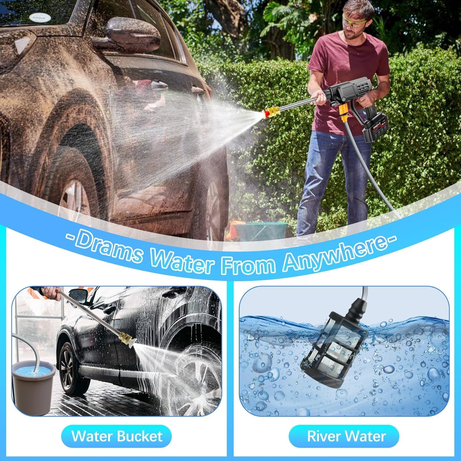 - This cordless car washer can also be used as bathroom cleaner machine. You can easily move around your vehicle or take it anywhere without the constraints of cords, making it ideal for washing cars in different locations, such as home, garage, or outdoors. Its a great equipments for your car & bike pressure washer.