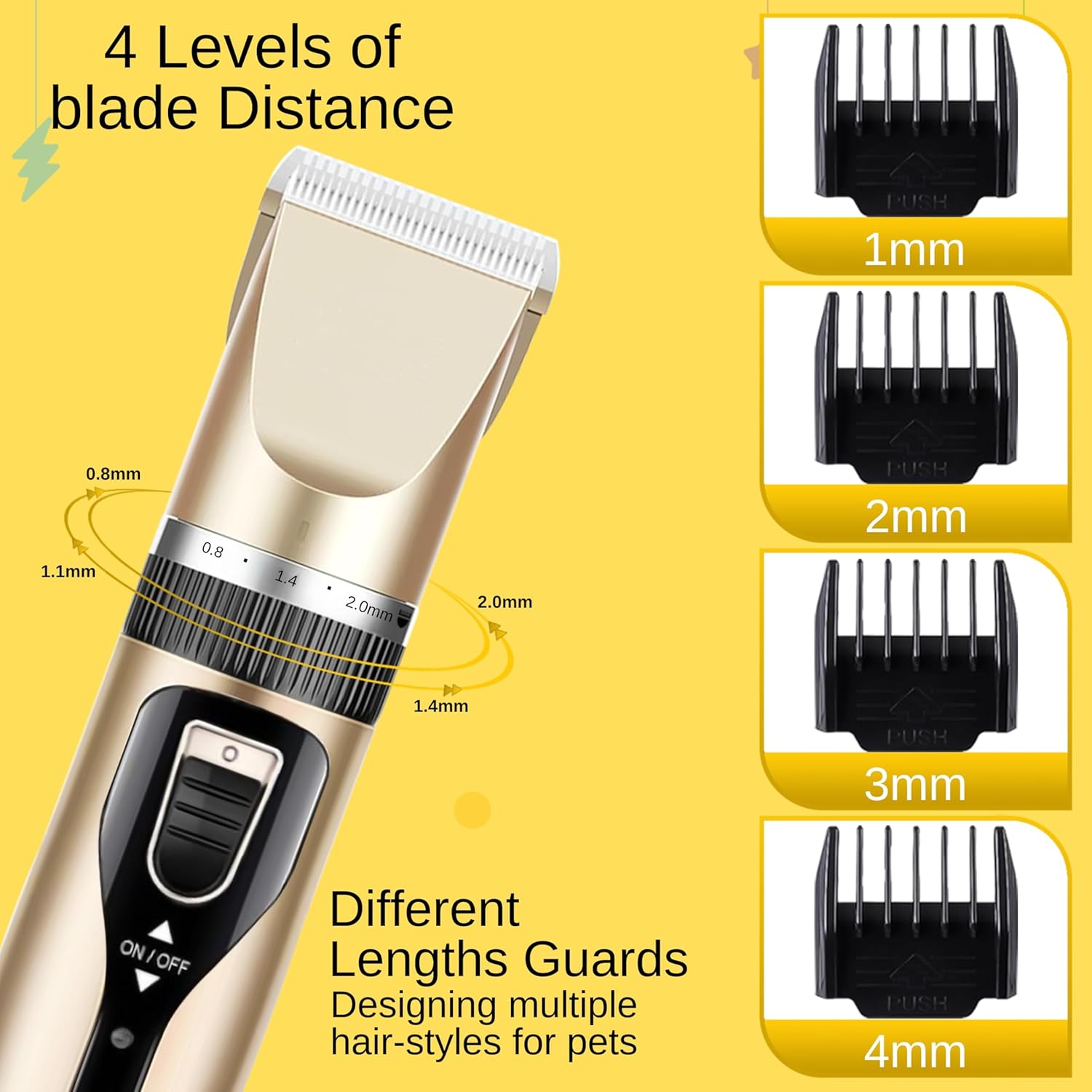 - Adjustable Length Settings: Comes with multiple comb attachments to customize hair length, making it suitable for various coat types and styles. Perfect for sensitive areas like paws, face, and ears. Rechargeable & Long-lasting: Built-in rechargeable battery with extended battery life, providing hours of continuous grooming without interruption. Includes a USB charging cable for convenience.