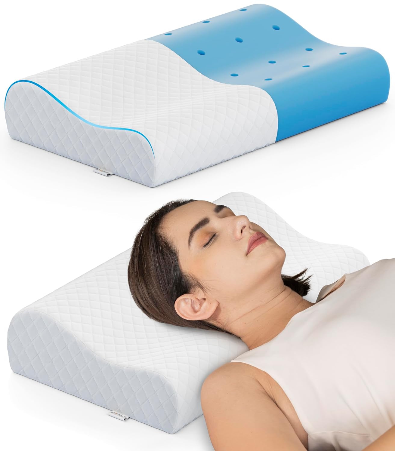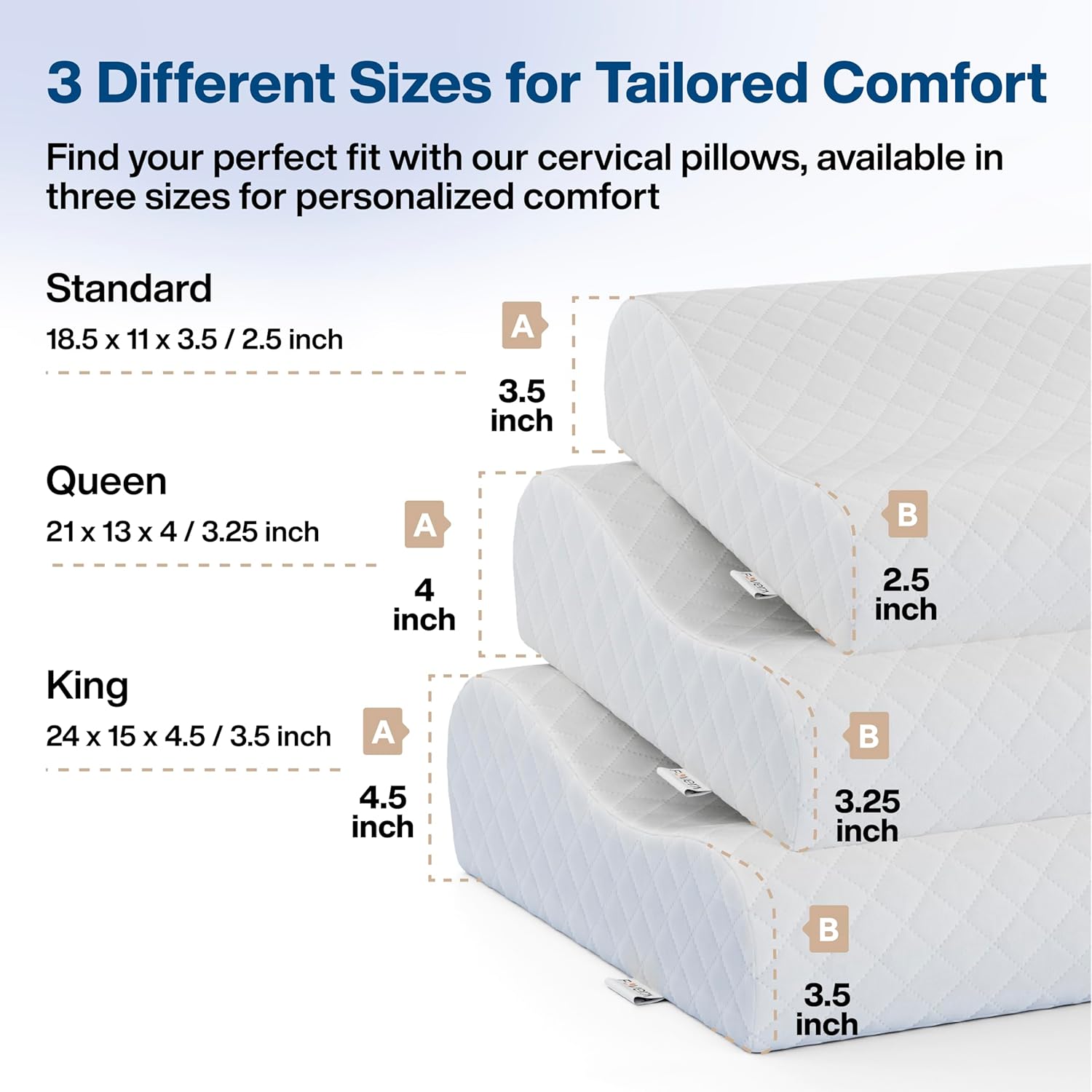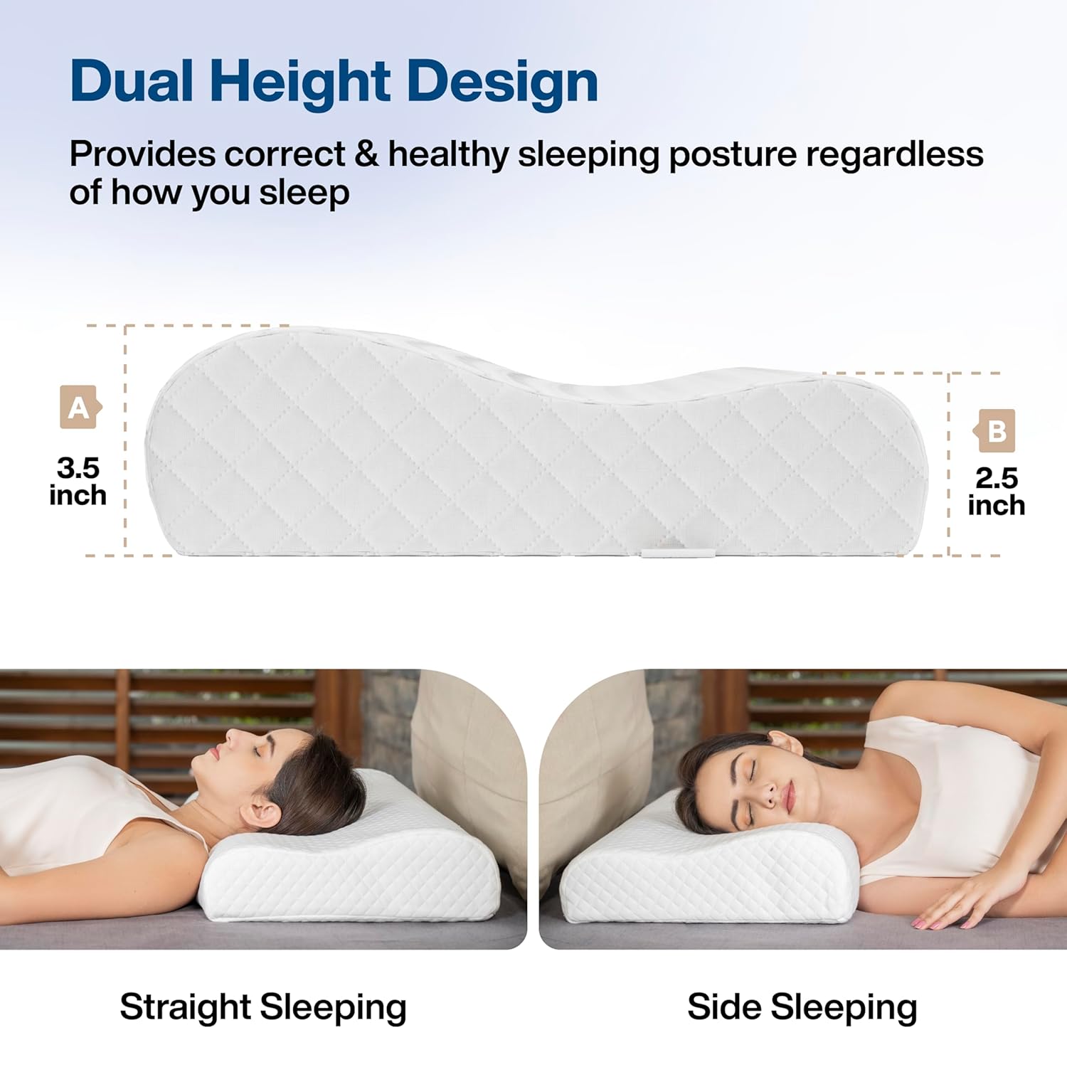 - PERFECT NECK SUPPORT WITH DUAL HEIGHT: Cervical pillow for neck and shoulder pain aligns the head, neck, and upper lumbar region, relieving spine pressure. It's designed with dual heights for optimal sleeping posture: low height for straight sleep and high height for side sleep.