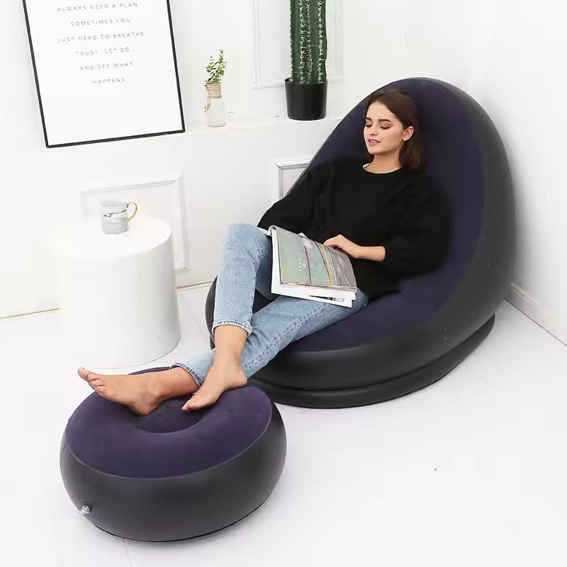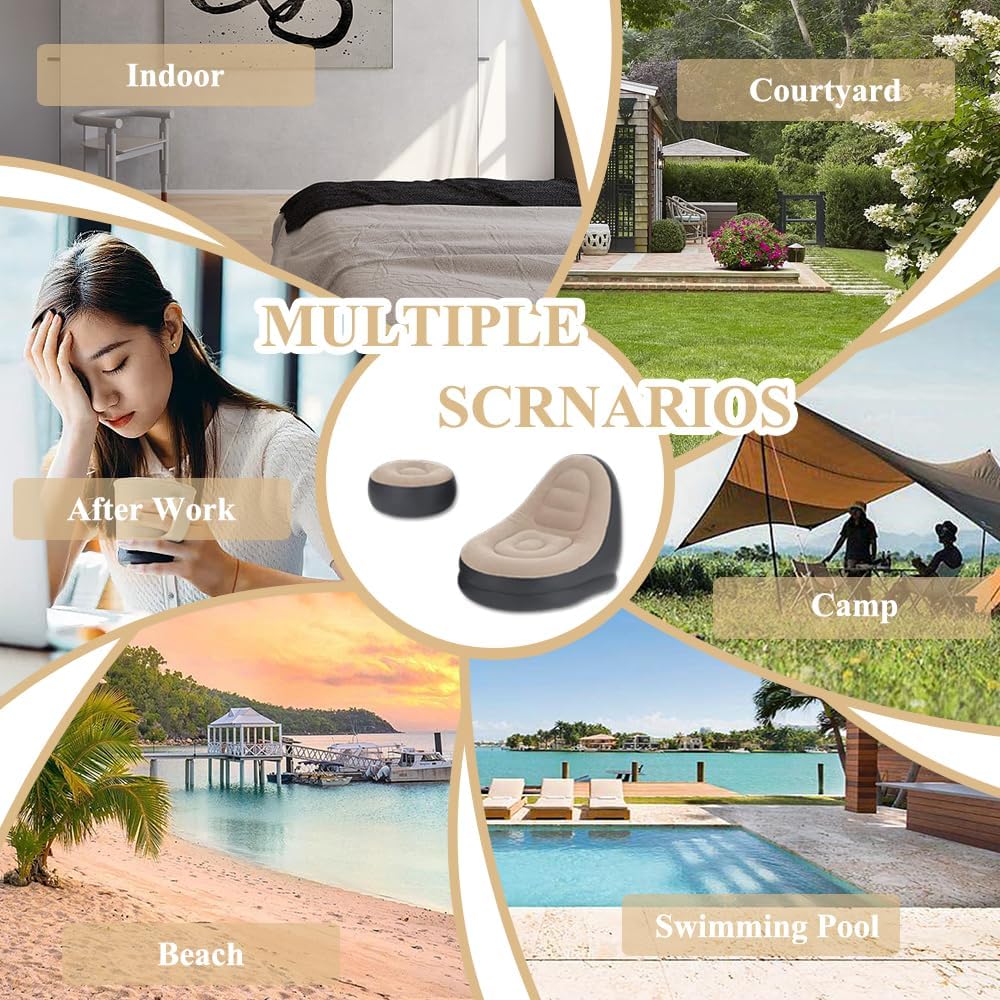 - Portable inflatable chair: The inflatable chair measures 12*38.5*31 inches and the footstool measures 10*19 inches. Very suitable for indoor recreation, outdoor garden play, camping and many other recreational places to use. It is an inflatable chair for adults and an inflatable chair for kids.?Air pump not included?