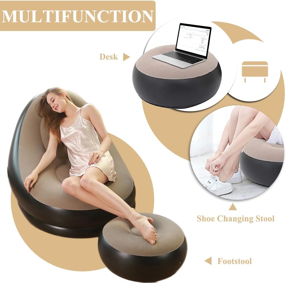 Votvy Chair, Portable Fast Inflatable Sofa Chair with Foot Stool, Surface with Plush Smooth Comfortable Ideal for Living Room, Room and Outdoor Camping use
