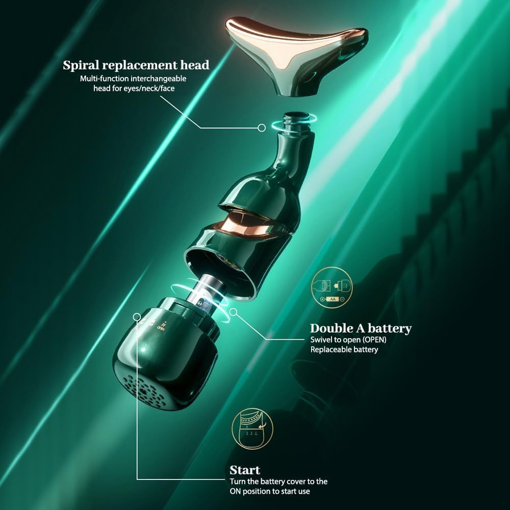 - Eye Massage: Perfectly fit the eye wheel, sound wave vibration, lift eye skin collagen, relieve eye fatigue, improve dark circles, let us glow