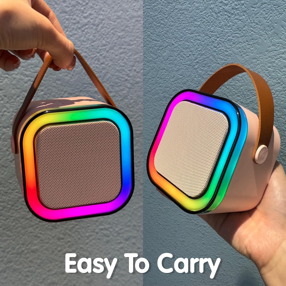 Votvy Electric Rechargeable Karaoke Mic with Speaker for Singing | Wireless Mini Portable Bluetooth Speaker with Microphone & LED Lights | Cute Birthday Gift for Kids Musical Toys for Boys, Girls and Adults